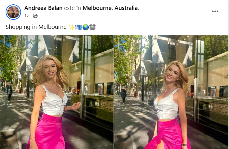 Andreea Bălan se află, de ceva timp, în Australia, acolo unde iubitul ei participă la o serie de turnee de tenis. Cei doi îmbină utilul cu plăcutul și se bucură și de o vacanță în doi, la căldură. Atunci când Victor Cornea este pe teren, Andreea Bălan profită de ocazie pentru a vizita orașul și a face cumpărături. Vedeta a vrut să împărtășească și cu fanii ei bucuria, însă a comis o gafă pentru care a fost aspru taxată.