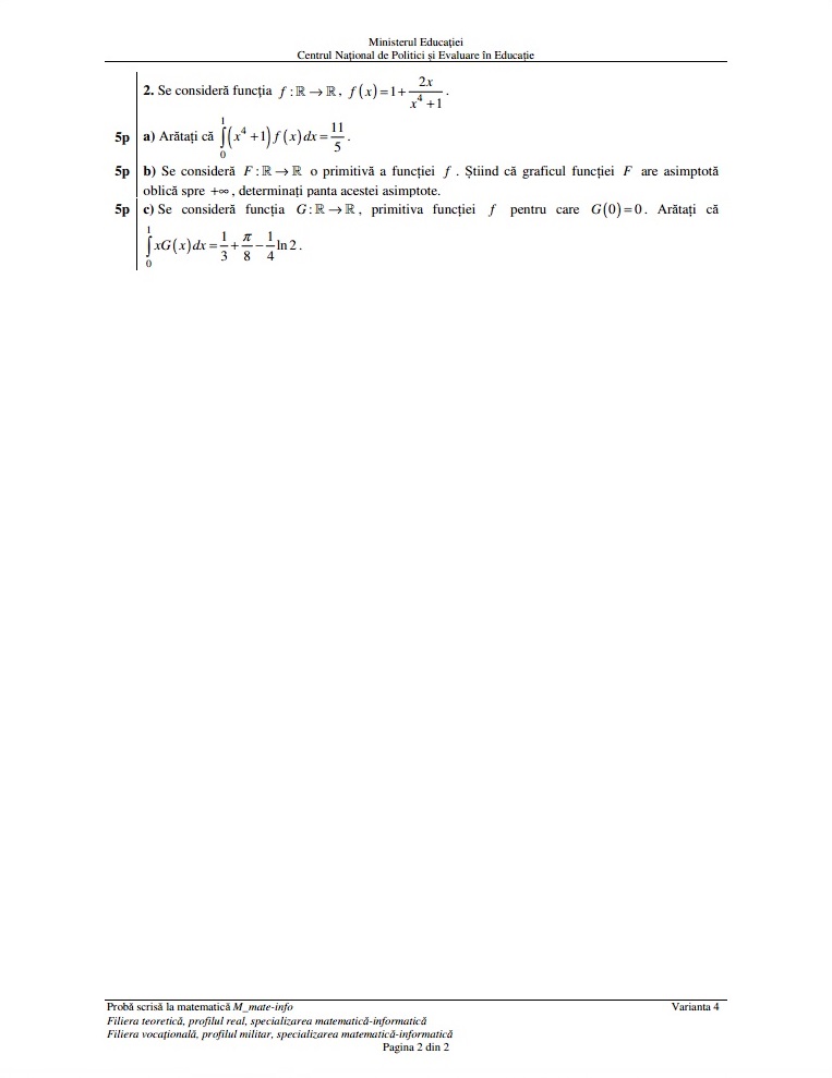 Subiecte Matematică Bac 2019 – profil mate-info