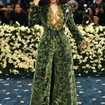 Cardi B a făcut senzație în acea seară cu o salopetă verde din catifea, cu un decolteu adânc și volane ușor mai deschise la culoare. Pantalonii largi și cordonul satin completau perfect silueta, iar mânecile lungi adăugau un aer sofisticat întregii ținute.