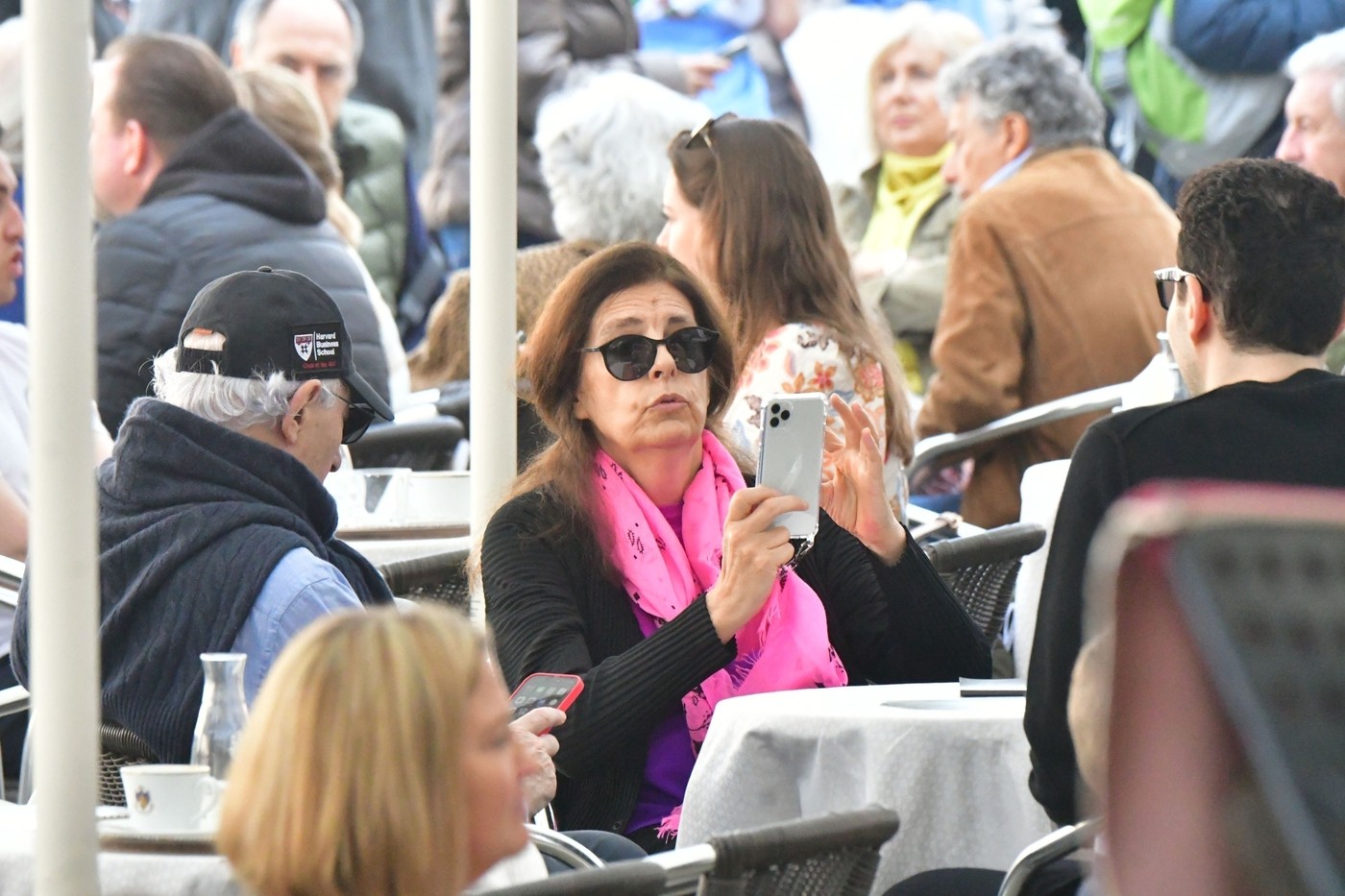 Francoise was accompanied by her husband Jean-Pierre Meyers and sons Jean-Victor Meyers and Nicolas Meyers during their Italian trip where they were seen sightseeing and a little fine Italian dining.