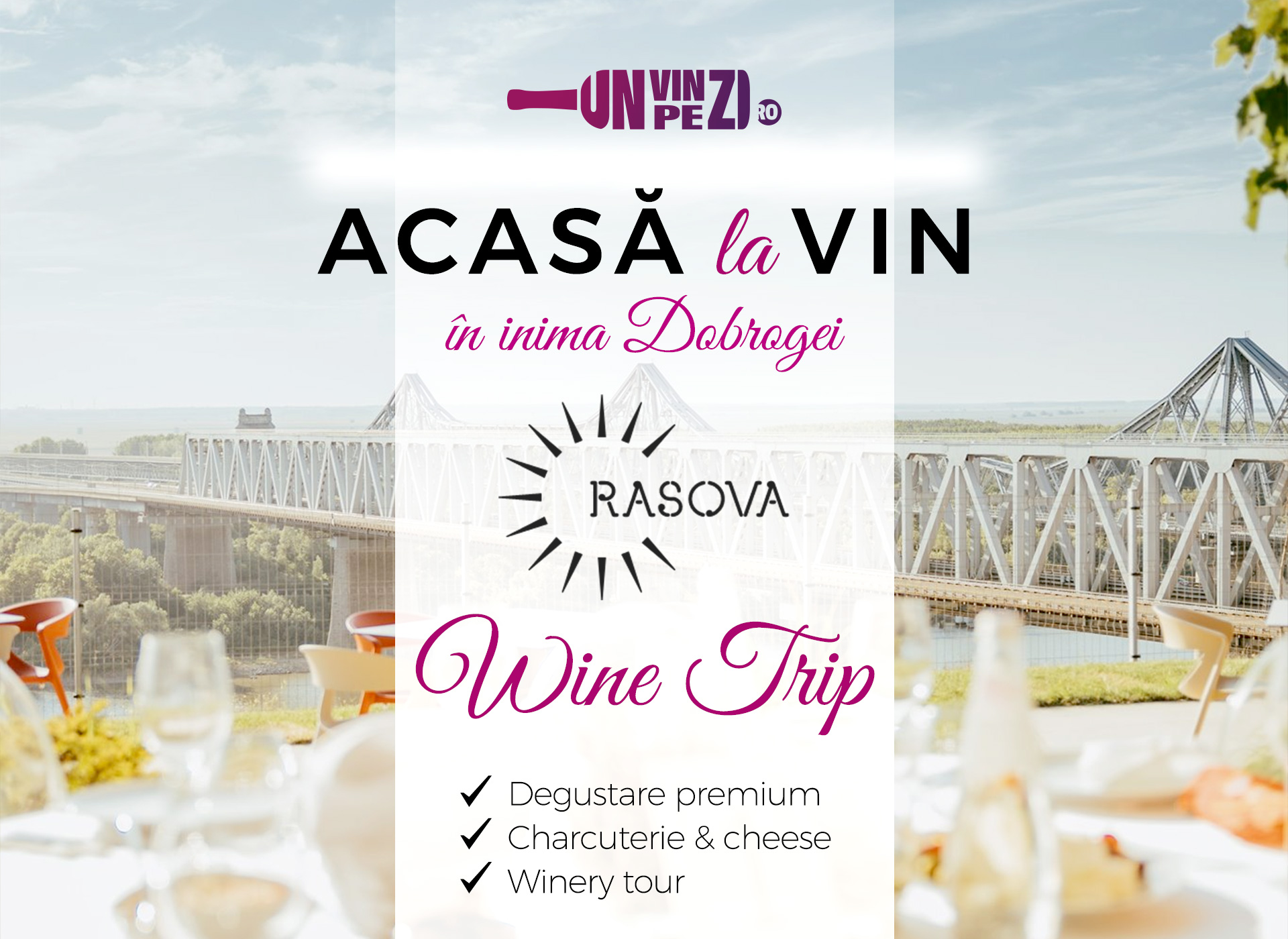 Premiul include transport, tur ghidat al cramei, degustare a 5–6 vinuri reprezentative, platouri gourmet și momente de relaxare în compania lui Valentin Ceafalău – expert Unvinpezi.ro și campion mondial la degustare în orb. Experiența se desfășoară în inima Dobrogei, pe malul Dunării, într-un cadru natural spectaculos.