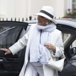 EXCLUSIVE: Glamorous as ever, Joan Collins is seen dressed all in white with her husband Percy in London, following her birthday celebrations last week. The iconic actress radiates elegance as the couple enjoys their outing in the city.