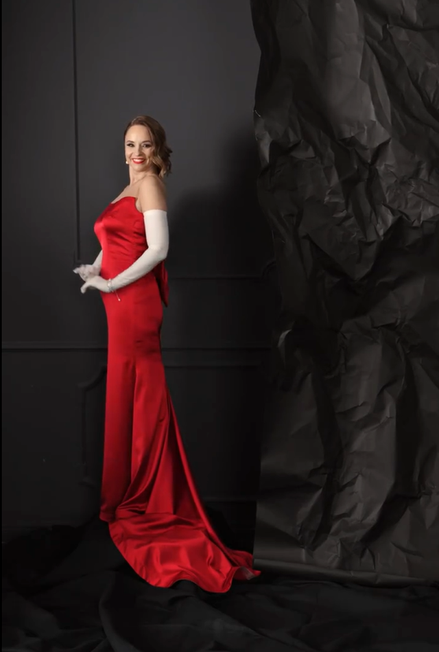 Cu ocazia Zilei Femeii, Andreea Marin a bifat o apariție fără cusur pe rețelele de socializare. Vedeta și-a pus în valoare noua siluetă cu o rochie roșie, lungă, cu o fungă amplă la spate, confecționată dintr-un material satinat. La rochia cu trenă a asortat și o pereche de pantofi stiletto tot de culoare roșie, precum și o pereche de mănuși albe, lungi.
