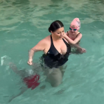Cei care o urmăresc pe prezentatoarea TV pe internet nu au putut să nu remarce decolteul costumului de baie, care îi pune în valoare bustul. Chiar dacă soțului ei și fetițelor nu li s-a părut rece apa, Gabriela Cristea a avut probleme în a se acomoda cu temperatura din piscină.