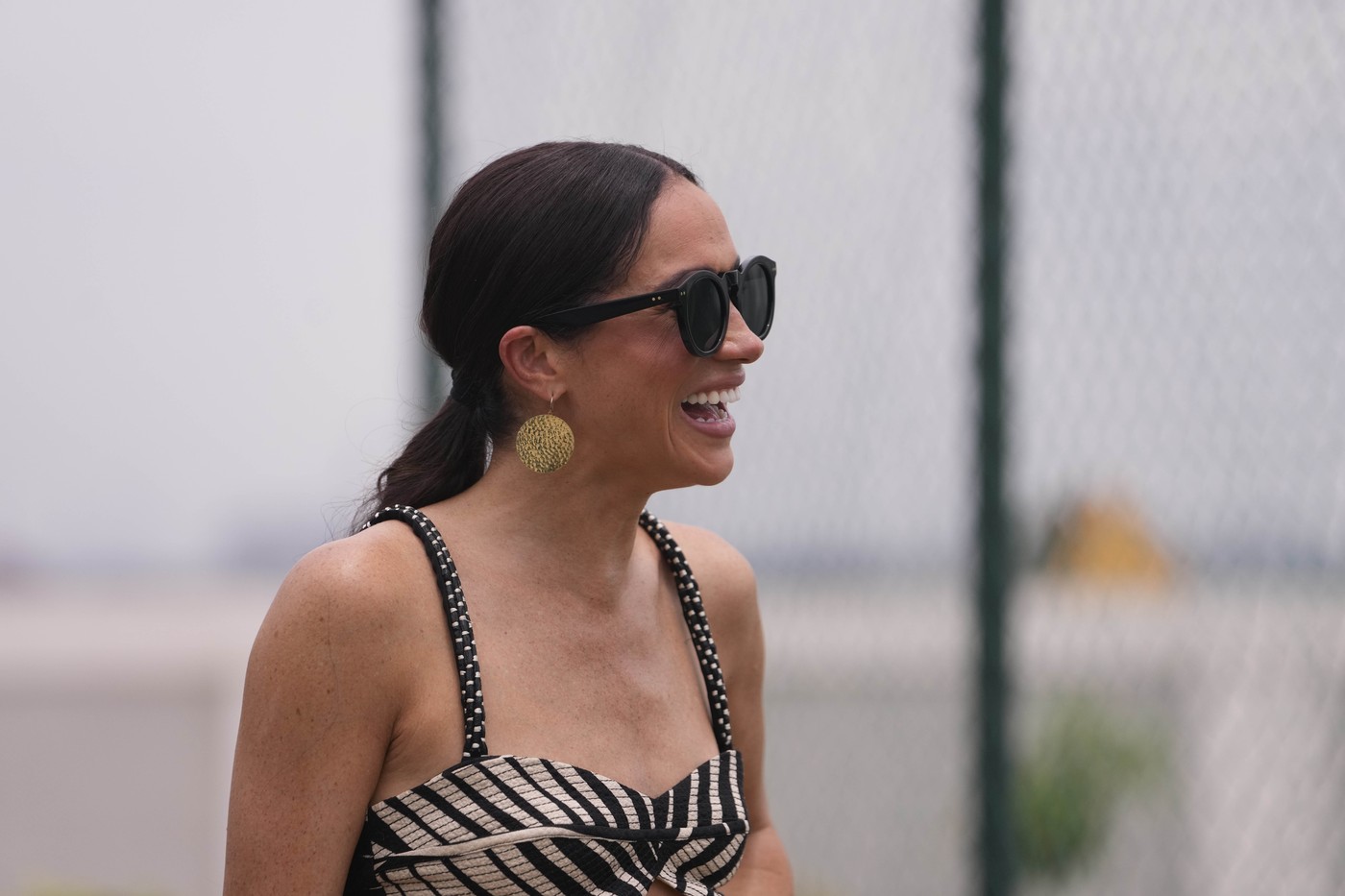 Meghan Markle leaves after an exhibition sitting volleyball match in Abuja, Nigeria, Saturday, May 11, 2024. Prince Harry and his wife Meghan are in Nigeria to champion the Invictus Games, which he founded to aid the rehabilitation of wounded and sick servicemembers and veterans.,Image: 871987173, License: Rights-managed, Restrictions: This content is intended for editorial use only. For other uses, additional clearances may be required., Model Release: no, Pictured: Prince Harry, Credit line: Sunday Alamba / AP / Profimedia