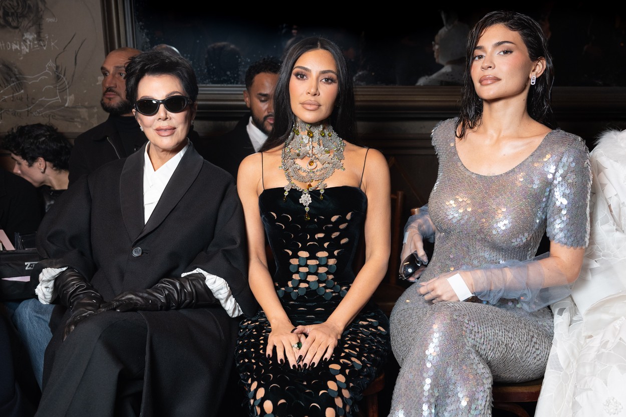 *NO SOCIAL MEDIA* Kylie Jenner & Kim Kardashian with her mother Kris Jenner pose together at the Maison Margiela in Paris during fashion week.