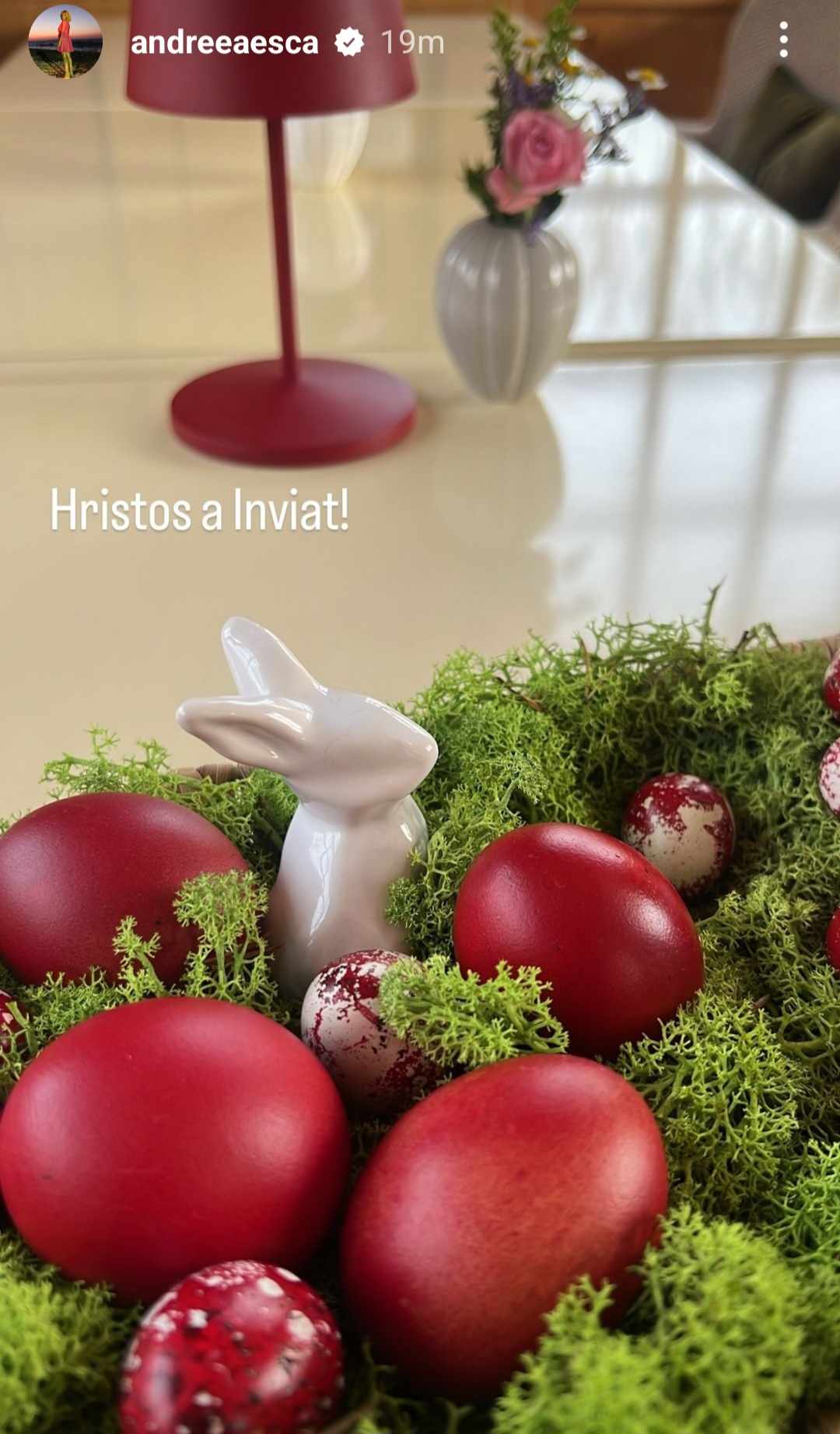 Știrista nu și-a uitat nici fanii de pe rețelele de socializare și a publicat câteva fotografii în mediul online, cu ocazia Paștelui. Andreea Esca a fost însoțită de cei doi copii ai săi, Aris și Alexia. Mult mai activă pe rețelele de socializare a fost fiica sa, Alexia Eram, care a publicat mai multe fotografii din mini-vacanță.