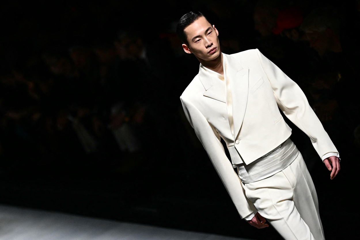A model walks the runway at the Dolce & Gabbana collection show during the Milan Fashion Week Menswear Autumn/Winter 2024/2025 on January 13, 2024 in Milan.,Image: 836599630, License: Rights-managed, Restrictions: , Model Release: no, Credit line: GABRIEL BOUYS / AFP / Profimedia